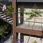 Os quartos à prova de som têm área de estar e pátio, e alguns deles são virados para o jardim. Refrigerador, forno e utensílios de cozinha também são fornecidos.